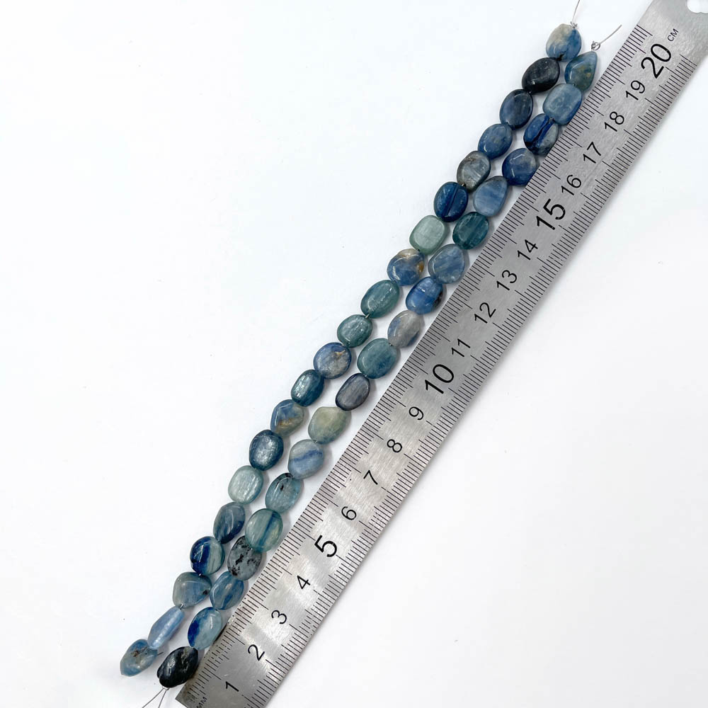 Данный кианит является длинными пластинчатыми кристаллами голубовато-прозрачных или синих оттенков, образованных силикатом алюминия. Но в природе также встречается кианит чёрного, желтоватого и зеленоватого цвета.