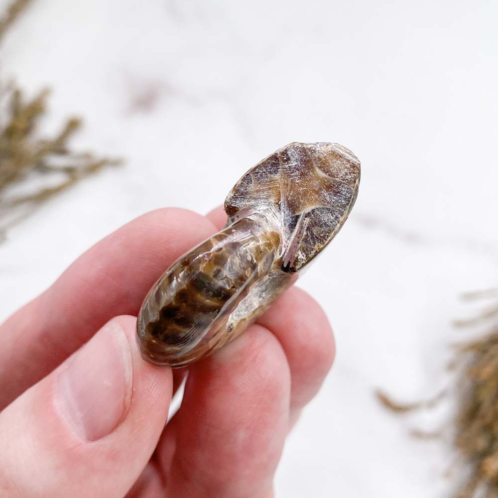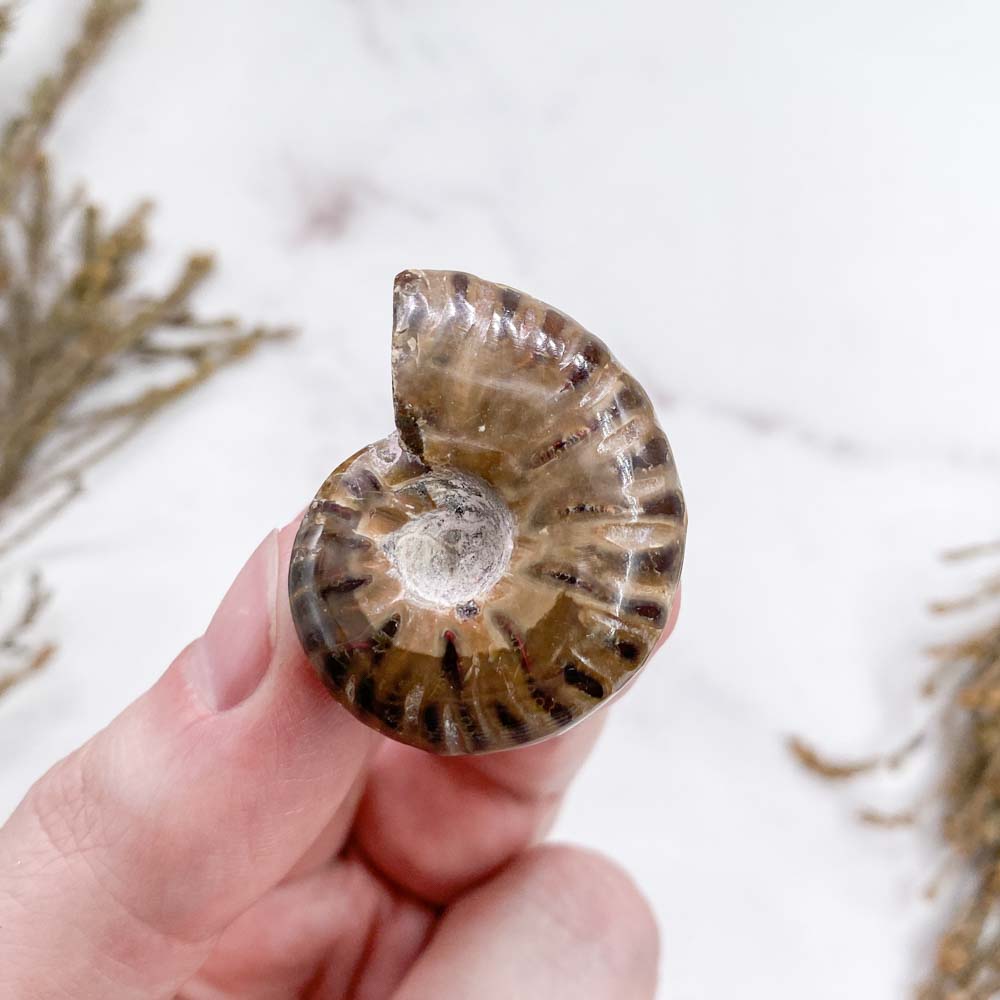 С точки зрения эзотерики все окаменелости помогают заземлиться, успокоиться и настроиться на спокойную работу. Спираль аммонитов построена по форме “золотого сечения”. Она несет в себе большой потенциал для развития в материальном и духовном плане.