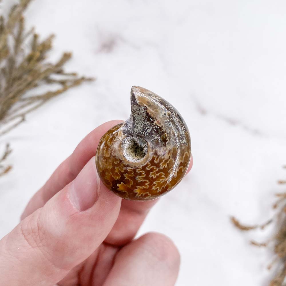 С точки зрения эзотерики все окаменелости помогают заземлиться, успокоиться и настроиться на спокойную работу. Спираль аммонитов построена по форме “золотого сечения”. Она несет в себе большой потенциал для развития в материальном и духовном плане.