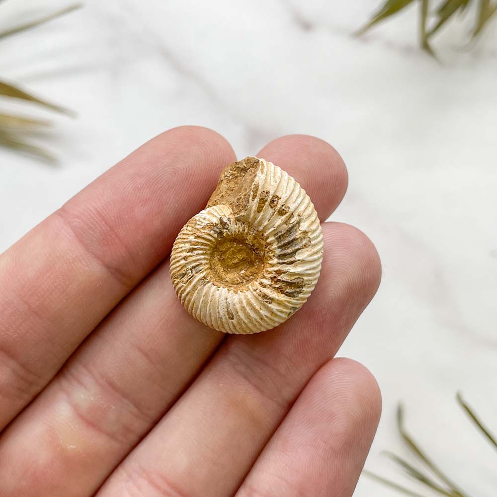 Аммониты, как и другие окаменелости не содержат в себе органического материала. За долгое время произошло замещение костного материала минералами, с сохранением изначальной формы. Этот процесс называется биоморфозой.