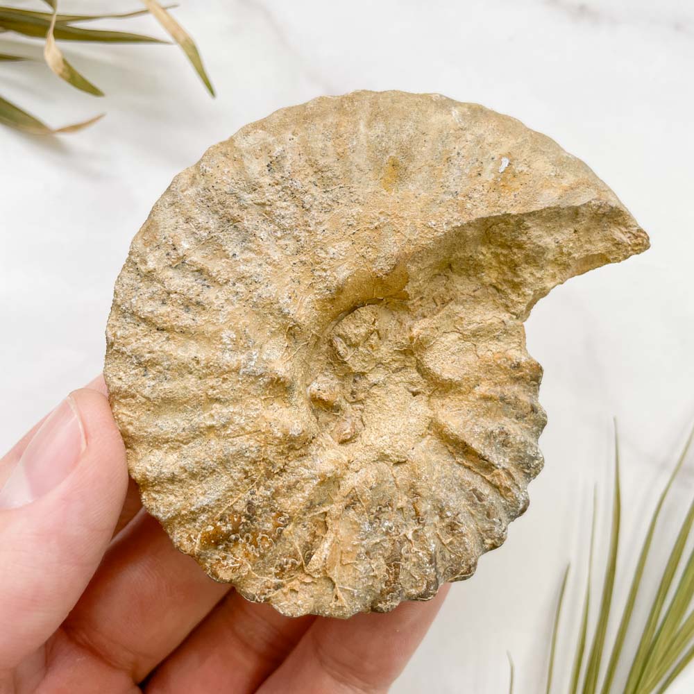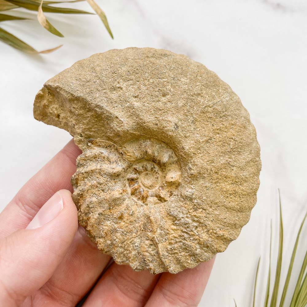 Аммониты, как и другие окаменелости не содержат в себе органического материала. За долгое время произошло замещение костного материала минералами, с сохранением изначальной формы. Этот процесс называется биоморфозой.