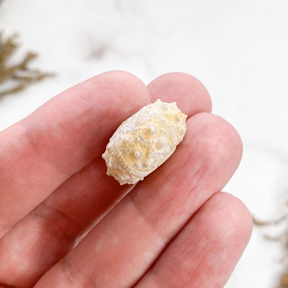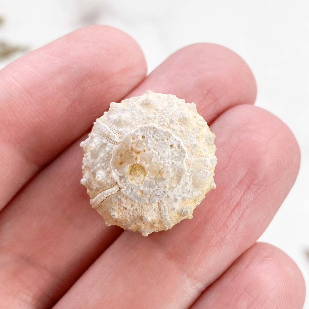 Морской еж Goniopygus sp (99-65 млн. лет) - относится к определенному роду морских ежей. Эти иглокожие известны своими отличительными чертами, включая уплощенную раковину с плавной куполообразной апикальной поверхностью, толстый апикальный диск и прямые амбулакры с небольшими парами пор. Они были особенно распространены в позднемеловой период. Ископаемые останки были найдены в таких местах, как Марокко.