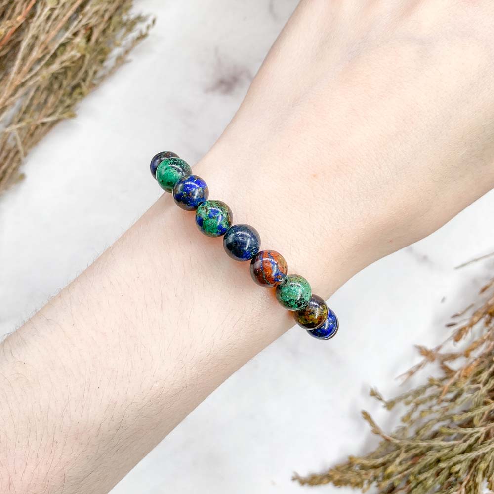 Считается, что азурмалахит поднимает сознание на новый уровень и обеспечивает большой контроль над духовным развитием. С древности камень использовался во время медитаций для входа в изменённое состояние сознания.