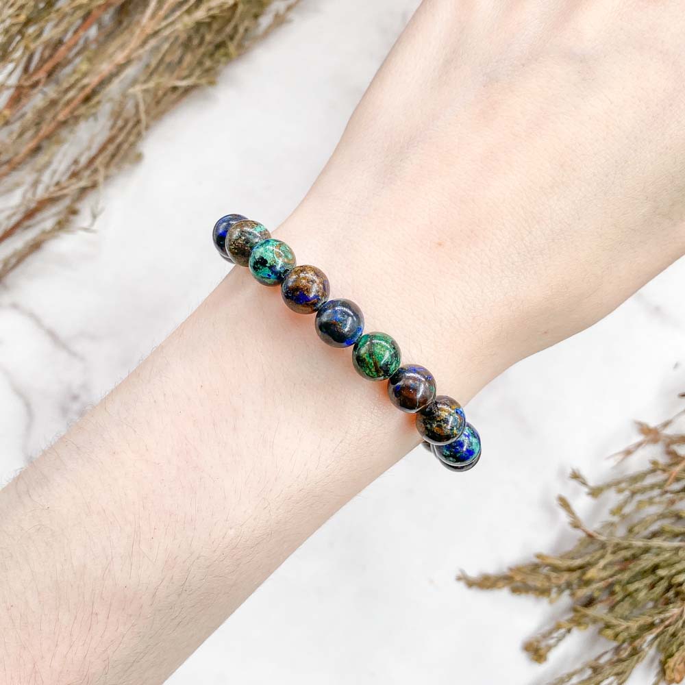 Считается, что азурмалахит поднимает сознание на новый уровень и обеспечивает большой контроль над духовным развитием. С древности камень использовался во время медитаций для входа в изменённое состояние сознания.