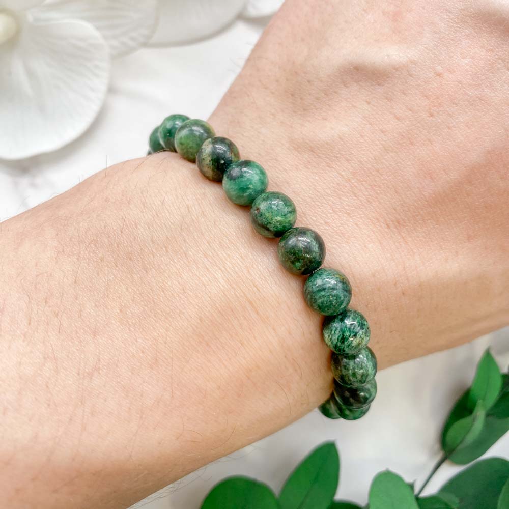 Несмотря на название, которое ассоциируется с темно-розовым цветком фуксии, фуксит вовсе не бывает розовым, а всегда зеленый. Зеленый авантюрин – это не что иное, как кварц, наполненный кристаллами фуксита. А в сочетании с карбонатом кальция и другими горными породами он образует красивейший поделочный материал – лиственит, который встречается преимущественно на Урале.