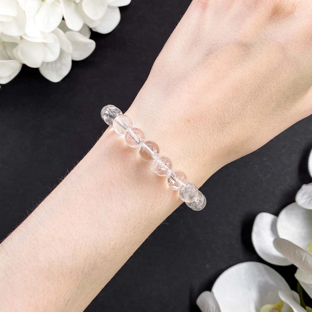 Браслет на плотной, прозрачной, эластичной резинке.