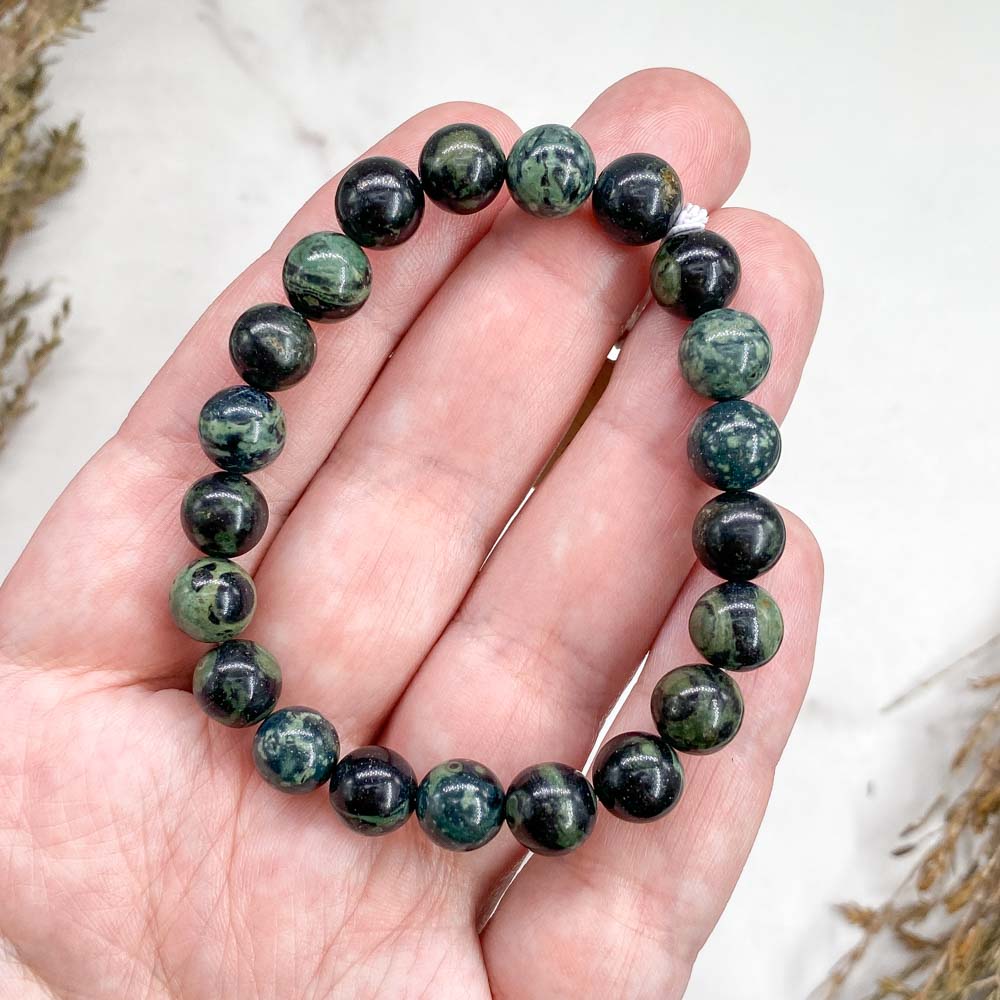 Данный камень имеет магическое свойство в виде придании носителю спокойствия и внутреннего умиротворения. Темно-зеленые завитки характеризуются защитными свойствами, они помогают восстановиться и выровнять разум, что задаёт определенную основу для борьбы с собственными фобиями и неуверенностью. Камень-камбаба является камнем, усиливающим концентрацию и самоорганизованность, повышает выносливость и терпение. Он станет помощником для открытия взгляда с целью нахождения единой истины.