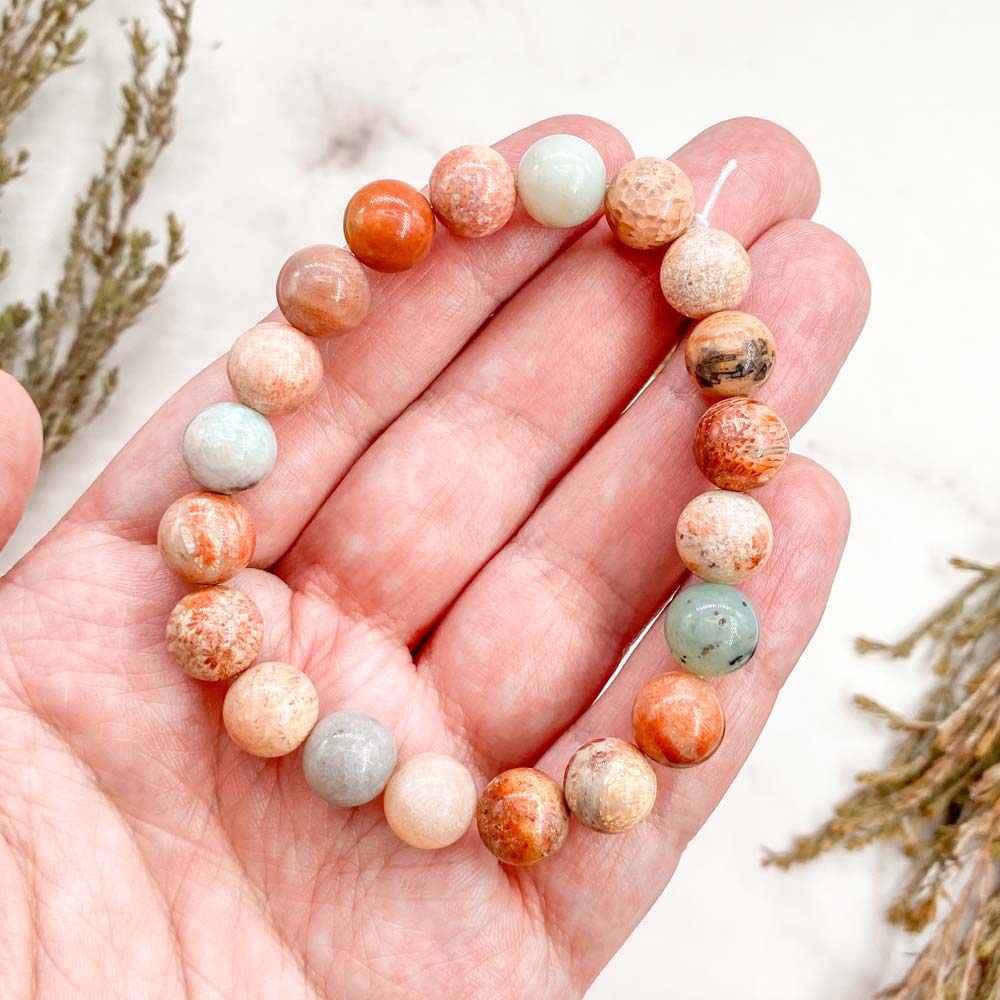 Браслет из коралла окаменелого розового