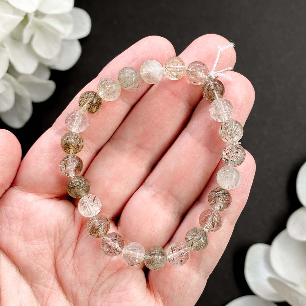 Браслет из кварца с актинолитом