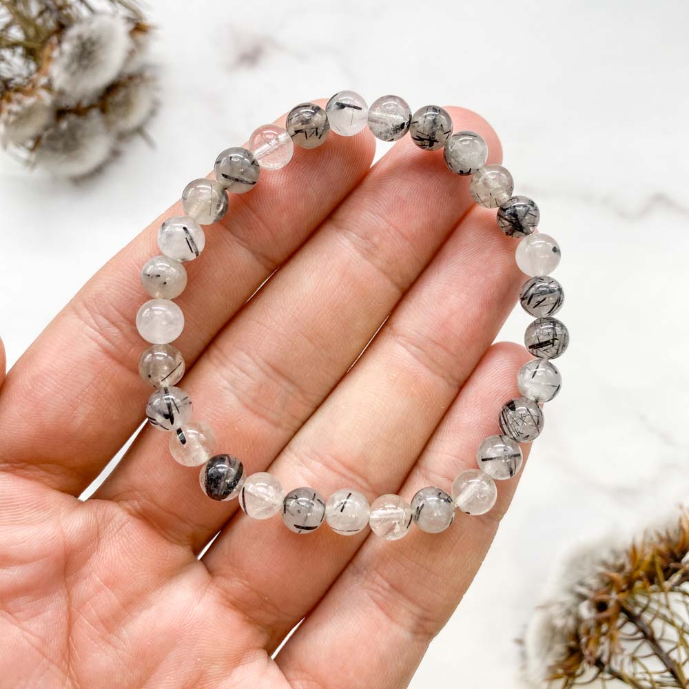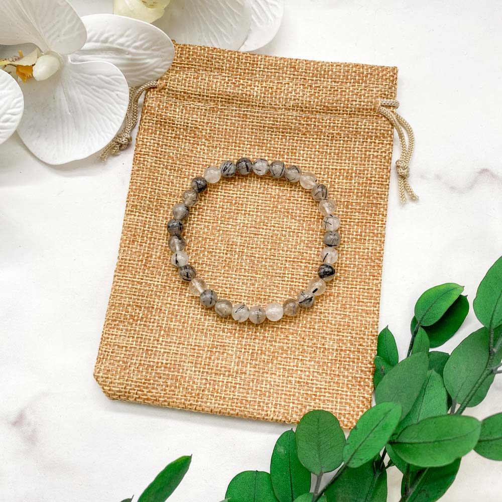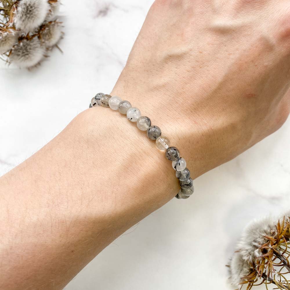 Браслет из кварца с шерлом (чёрным турмалином)