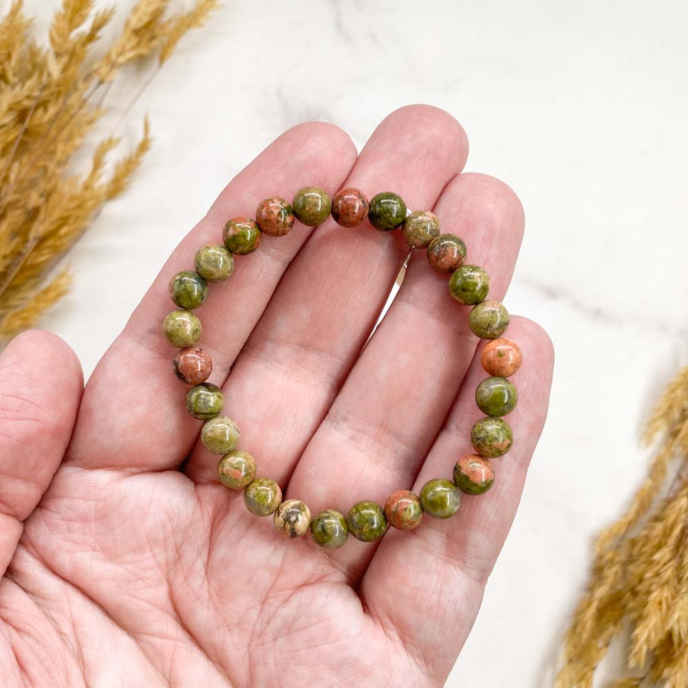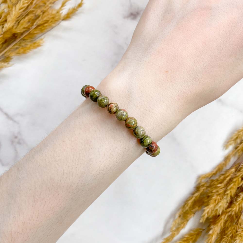 Свойства камня очень похожи с эпидотом, в основном из которого и состоит камень. Унакит помогает принять духовный рост, как обязательную часть жизни и развиваться в этом направлении.