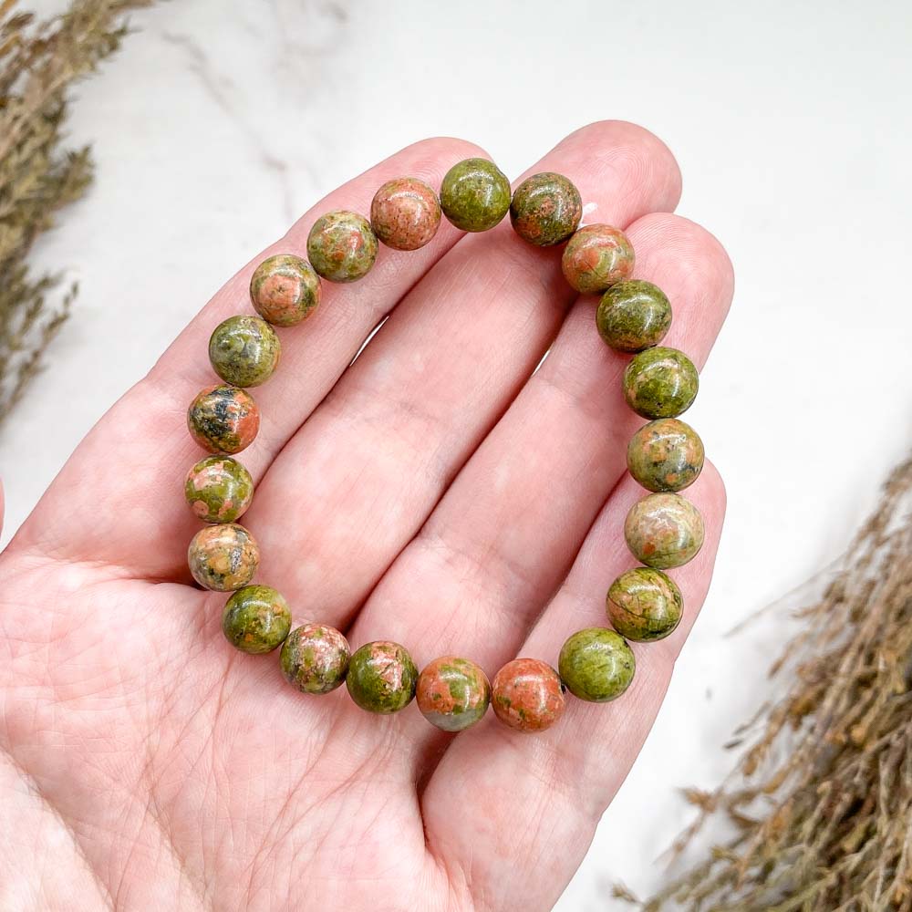 Свойства камня очень похожи с эпидотом, в основном из которого и состоит камень. Унакит помогает принять духовный рост, как обязательную часть жизни и развиваться в этом направлении.
