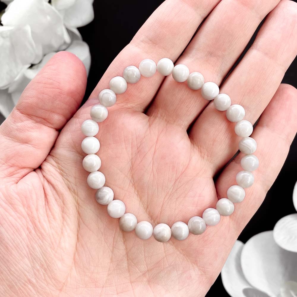 Белый агат следует отличать от имитаций. В настоящем камне структура будет неоднородная, иногда полупрозрачная, а не полностью одинаковая по всей поверхности