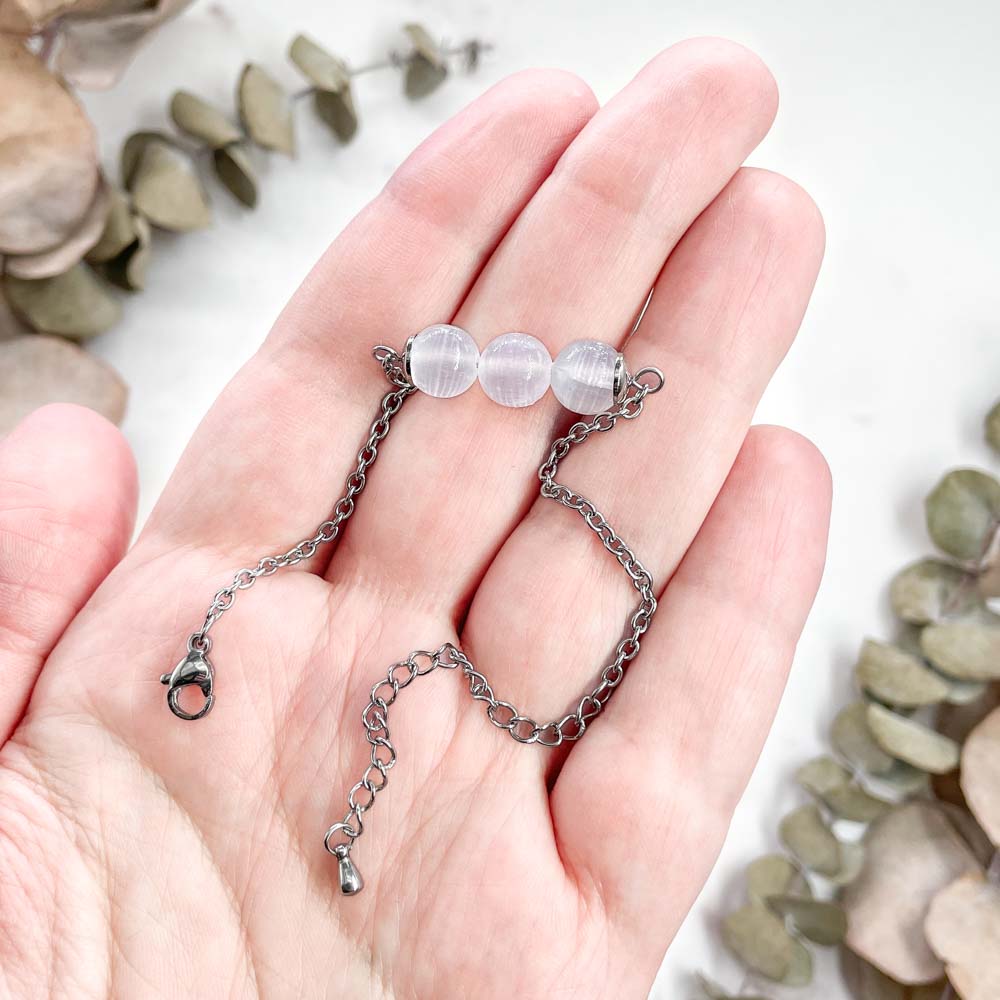 !Селенит как и многие другие волокнистые камни нельзя мыть под водой. Камень может развалиться прямо в руках. Также минерал мягкий и царапается даже ногтем!