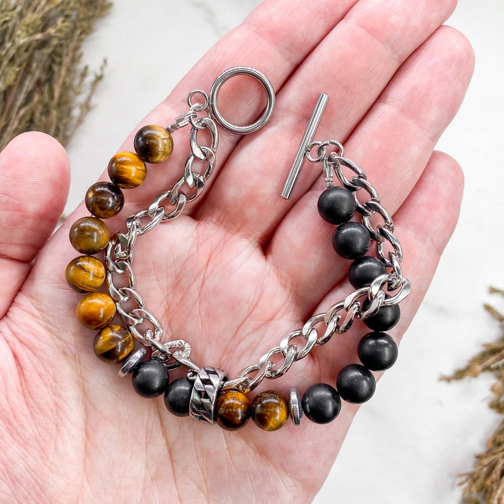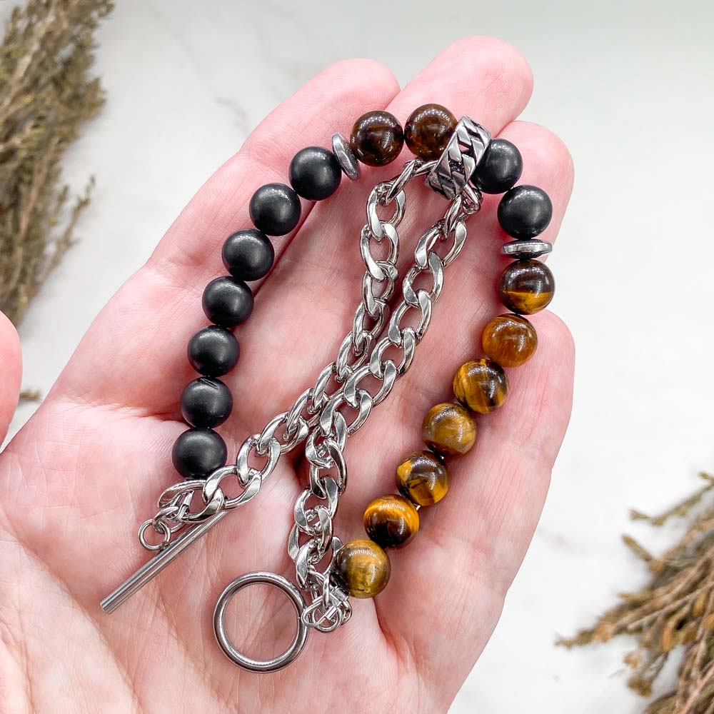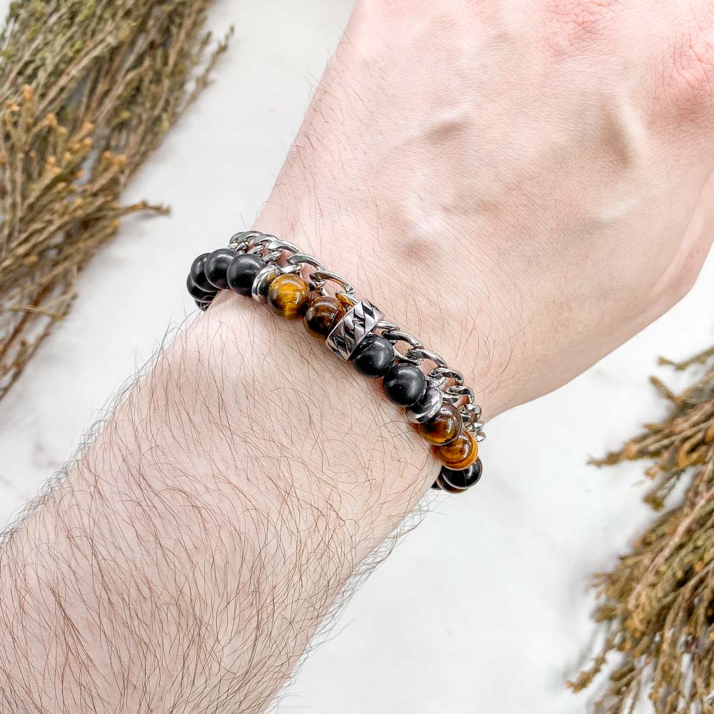 Браслет из тигрового глаза и шунгита с геметином