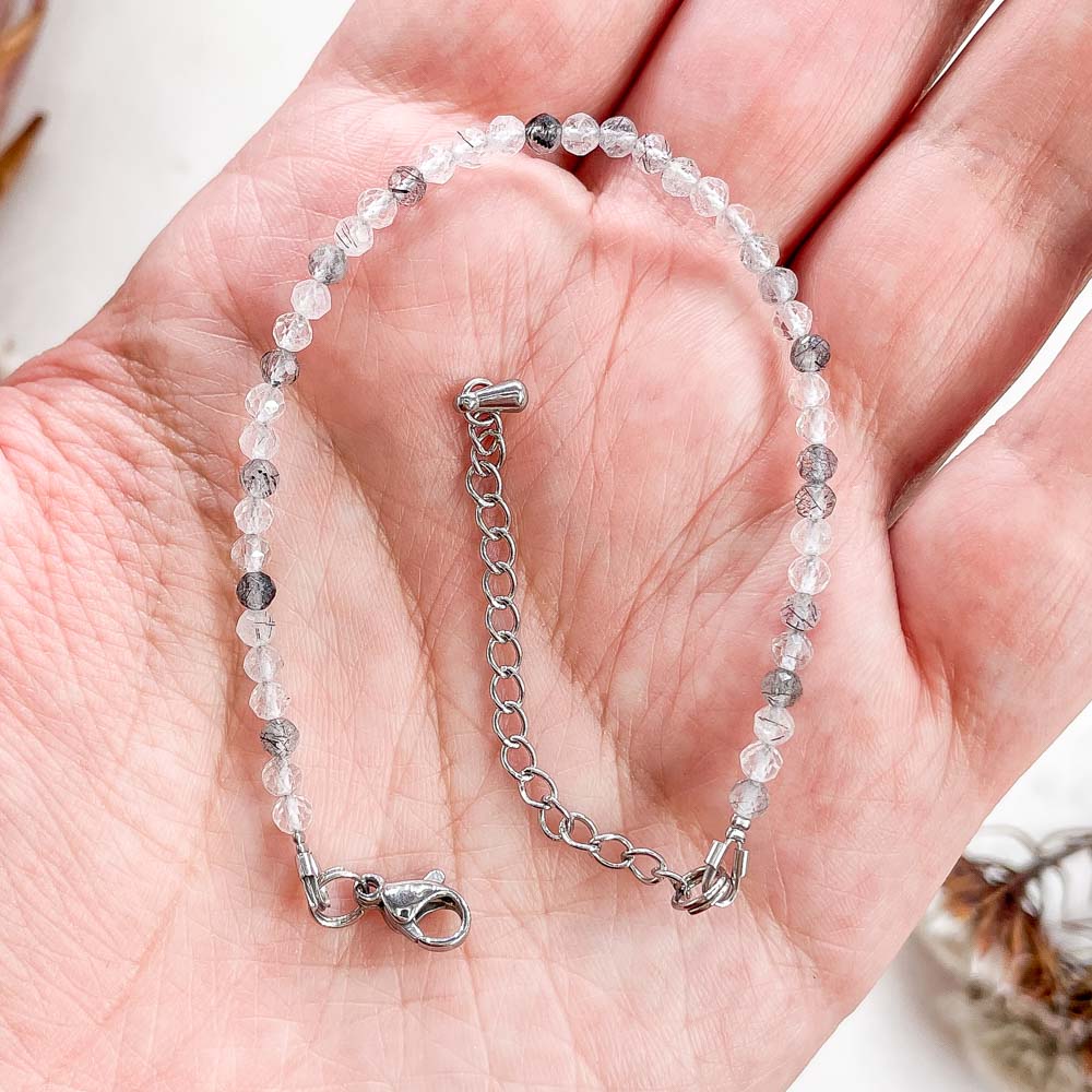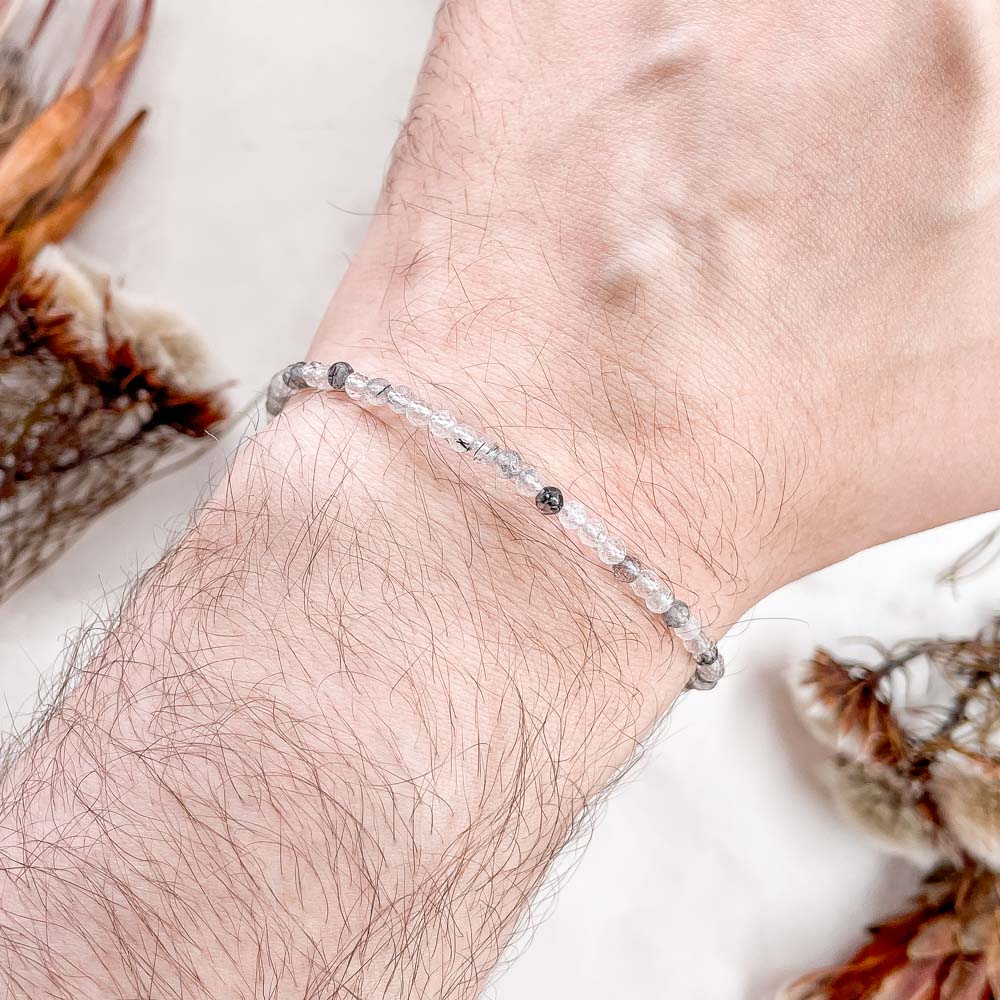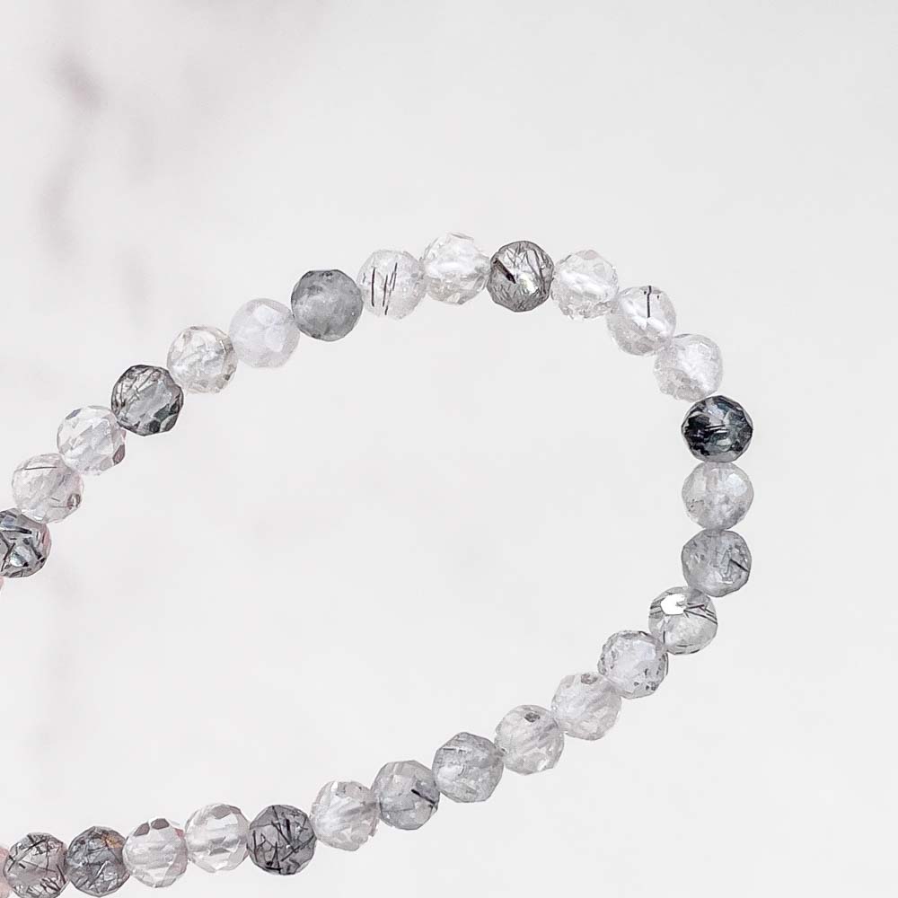 Браслет из кварца с шерлом (черным турмалином) (огранка)