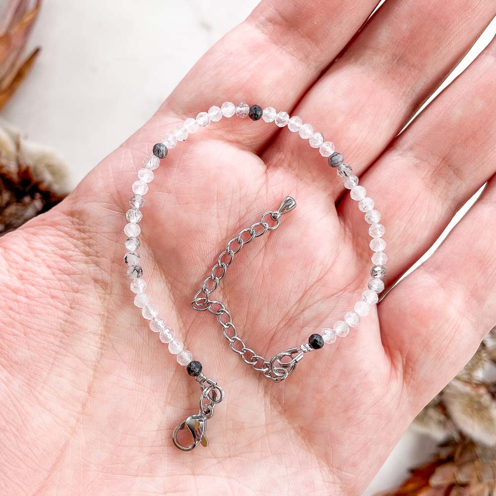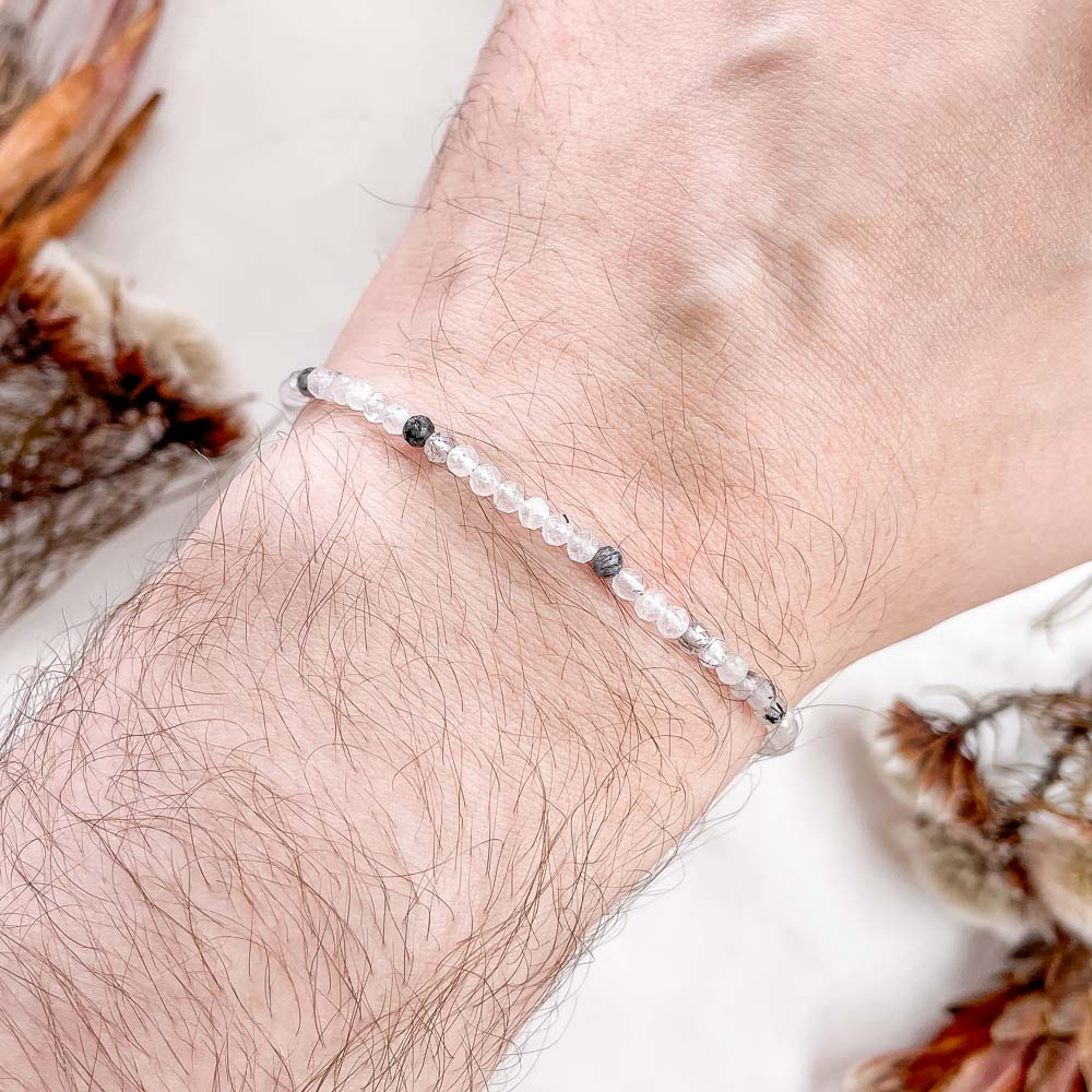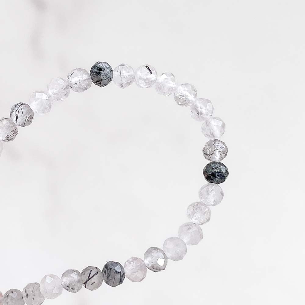 Браслет из кварца с шерлом (черным турмалином) (огранка)