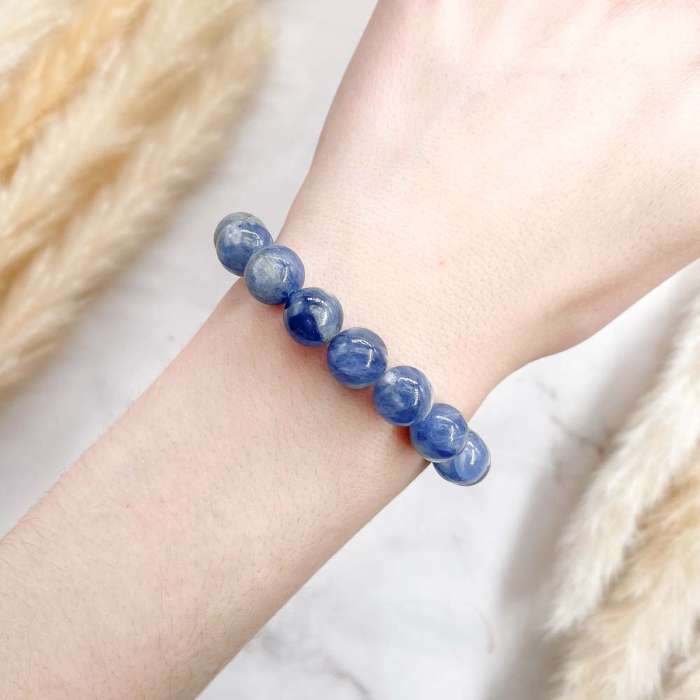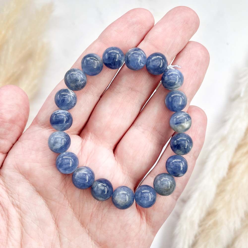 Отношение к горловой чакре проявляется в способности минерала к пробуждению ораторских способностей, четкого и свободного изложения собственных мыслей и прочищения связок. Помогает отстраниться от негативных и мешающих мыслей и суждений, с целью формирования собственного неповторимого жизненного пути, т.е. кианит способствует реализации отложенных дел, приносит хозяину решимость и ответственность в осуществлении собственных планов. Также может использоваться для «заземления», дабы трезво оценить и проанализировать свои действия и поступки.