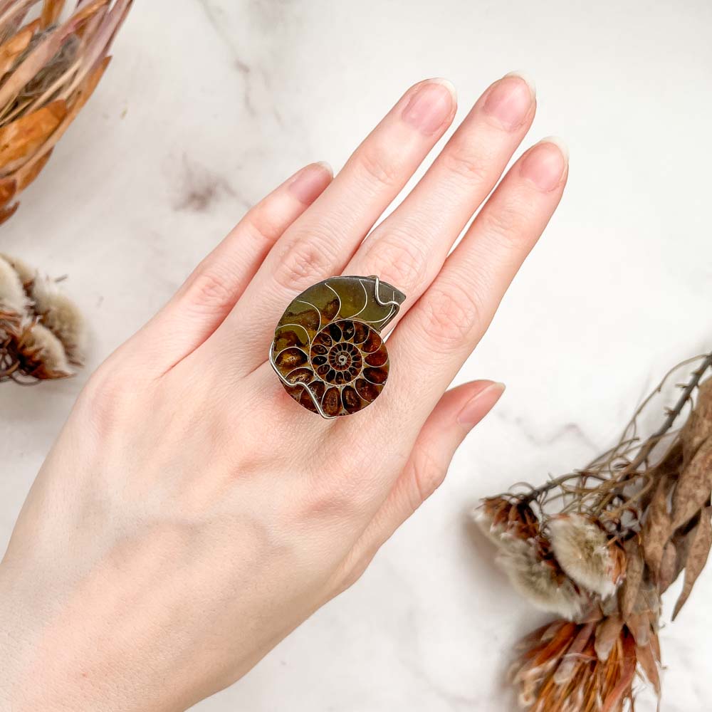 С точки зрения эзотерики все окаменелости помогают заземлиться, успокоиться и настроиться на спокойную работу. Спираль аммонитов построена по форме “золотого сечения”. Она несёт в себе большой потенциал для развития в материальном и духовном плане.