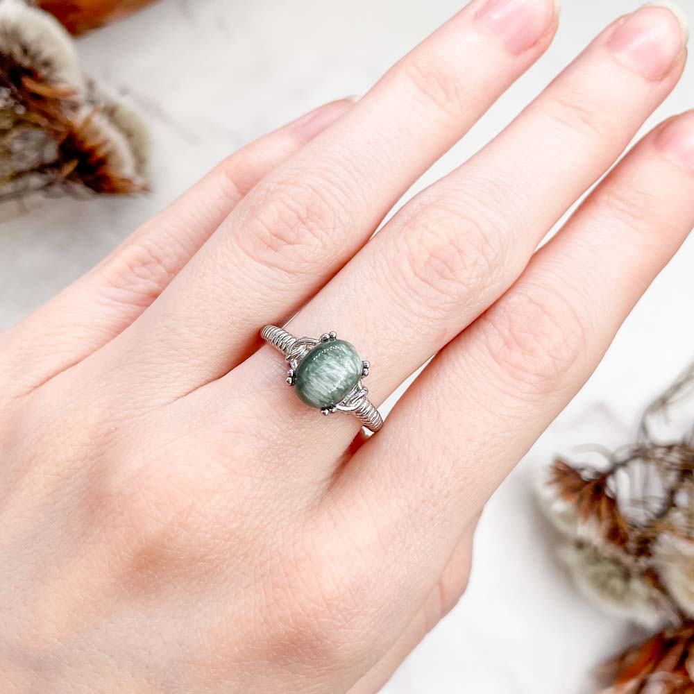 Серафинит является камнем, символизирующим самоисцеление, благополучие, внутреннее богатство. Он помогает в случае жизненного «тупика», мотивирует и вдохновляет, приносит удачу и душевное спокойствие. Является камнем семьянинов: регулирует отношения между родителями и детьми, укрепляет романтику внутри пары. Отмечаются особые магические свойства для женской половины человечества, заключающиеся в придании привлекательности, уверенности, молодости, особенно при ношении украшений из данного камня.