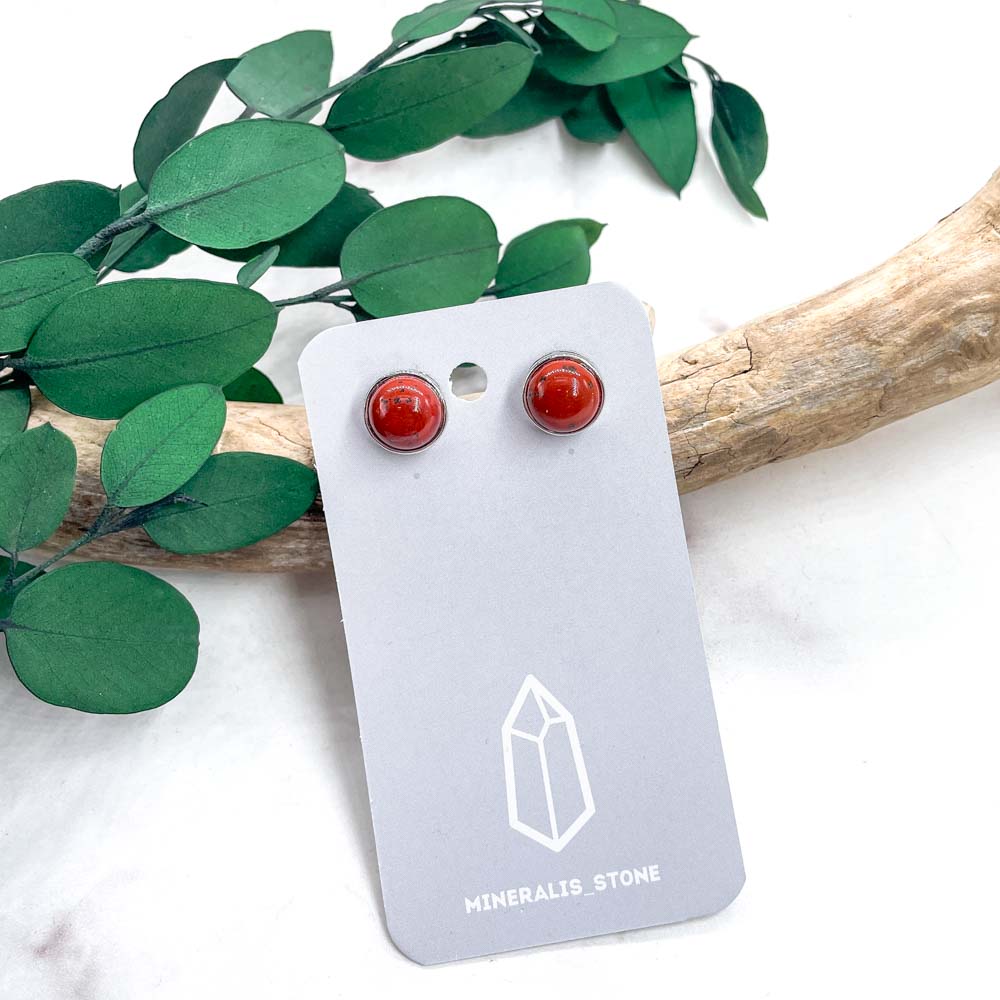 Пусеты из яшмы красной